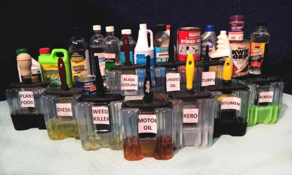 Using multiple BruKon containers keeps brushes for different substances separate and labeled. This prevents cross-contamination and preserves the integrity of each treatment or lubricant.